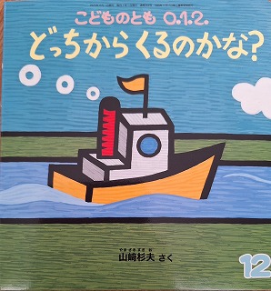 月刊こどものとも0.1.2 「どっちからくるのかな」 山崎杉夫 作 福音館書店 ![]() ウー ウー ウー どうろに しょうぼうしゃが やってくる どっちから くるのかな? ぽん ぽん ぽん かわに おふねが やってくる どっちから くるのかな? ページをめくると、いろんな乗り物がやってきます どっちからくるのかな? と言いながらゆっくりページをめくってみましょう ウー ウー ウー ぽん ぽん ぽん やってきた やってきた 色や形、音の違いを子どもと一緒にたのしんでみましょう |